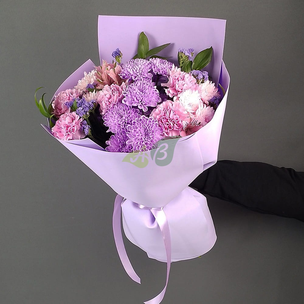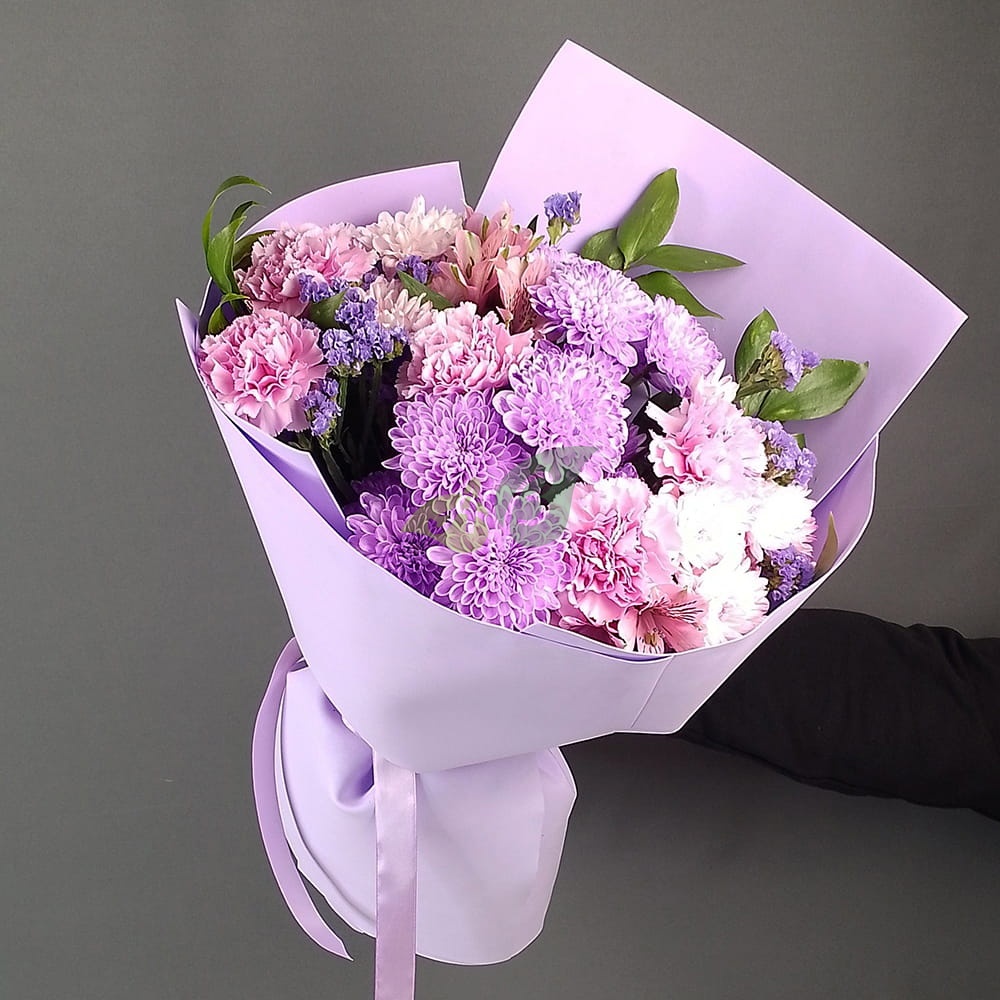 - Хризантема кустовая - 2 штуки, цвет - сиреневый, длина стебля - 50 см;